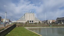 Allez dans le bâtiment à droite par le deuxième couloir.
