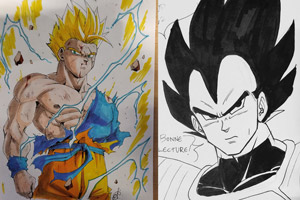 Pour préparer la Chibi Japan Expo, nous faisons pas mal de choses...Gogeta Jr a redessiné des cases et des pages, et Faye les a coloriées ! Ils deviendront des posters...
